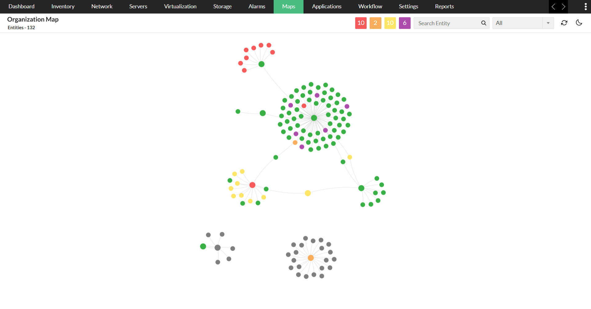 OpManager’s Organization Maps take observability to the next level by offering a comprehensive, visual layout of your entire network. You get an at-a-glance view of: