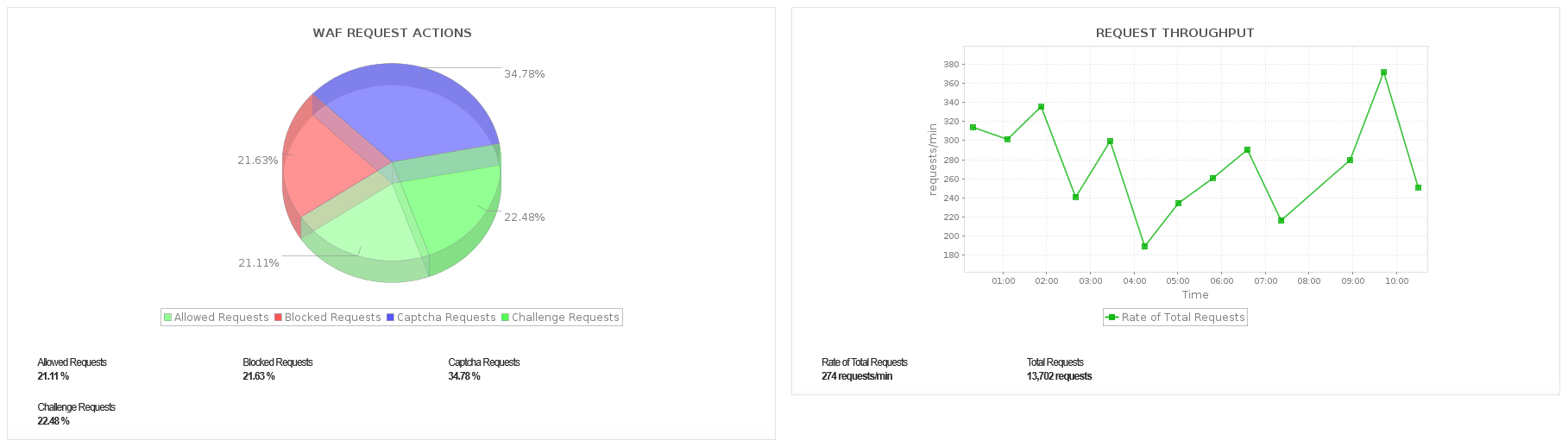 - Analyze how WAF rules are applied and ensure that legitimate traffic is allowed while threats are blocked, by tracking request actions.