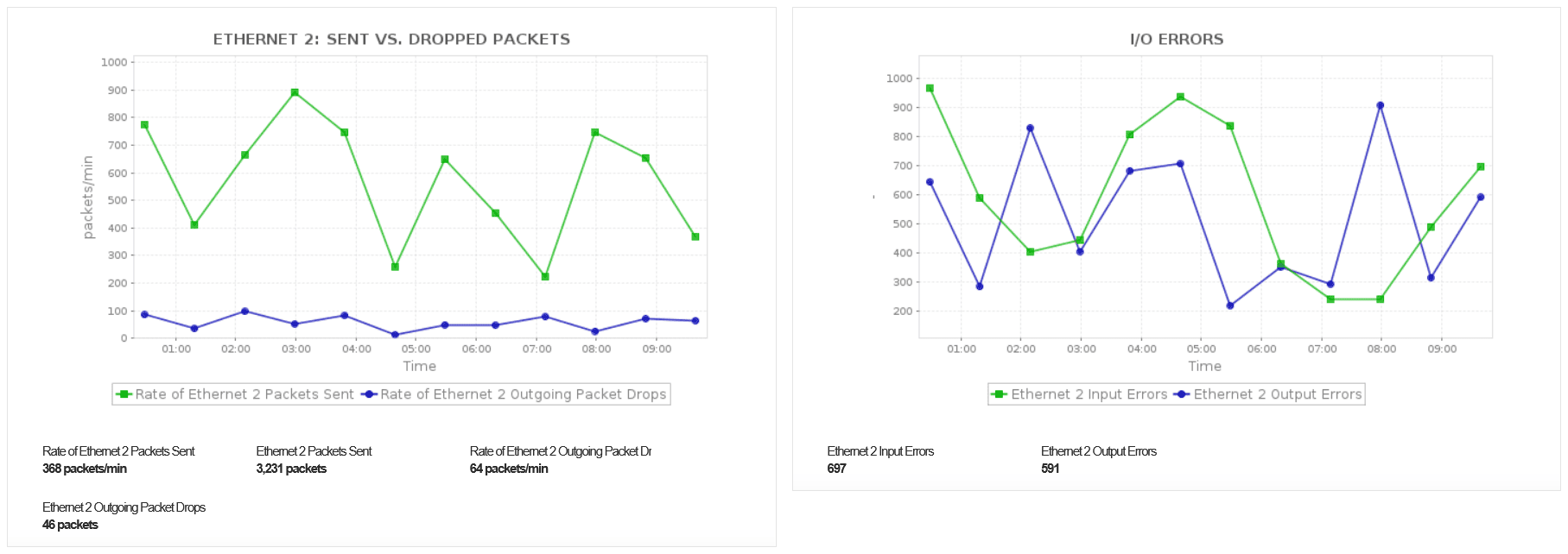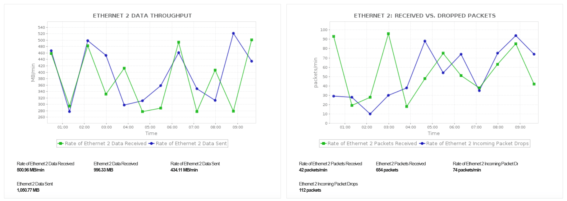 - Track network bandwidth usage and stability to identify potential packet loss using metrics like Ethernet data throughput and Received vs Dropped packets.