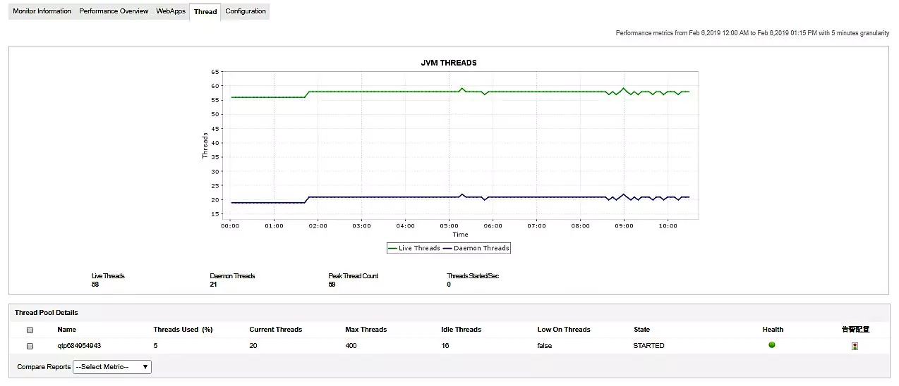An efficient server and application monitoring tool should collect infrastructure-level metrics. With Applications Manager's application and server monitor, you can perform optimal application server monitoring by measuring critical application server metrics like response time, requests per minute, thread and session details, CPU usage, as well as disk and memory utilization. Plus, you can also check for anomalies.