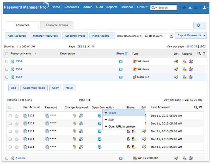 1. Any SSH based device such as Linux servers or network devices can be added into Password Manager Pro as a resource. This allows administrators and other users to connect to the target system via a remote SSH session.