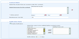 Contract details, renewal details, child contracts, expiry notifications, and associated assets