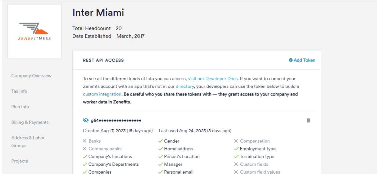 - In the Authorization section, paste the token generated in Trinet Zenefits in the Value field.