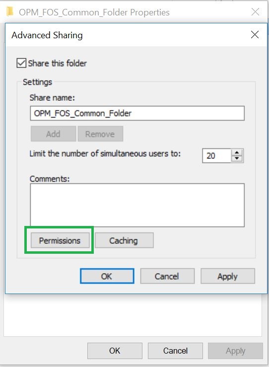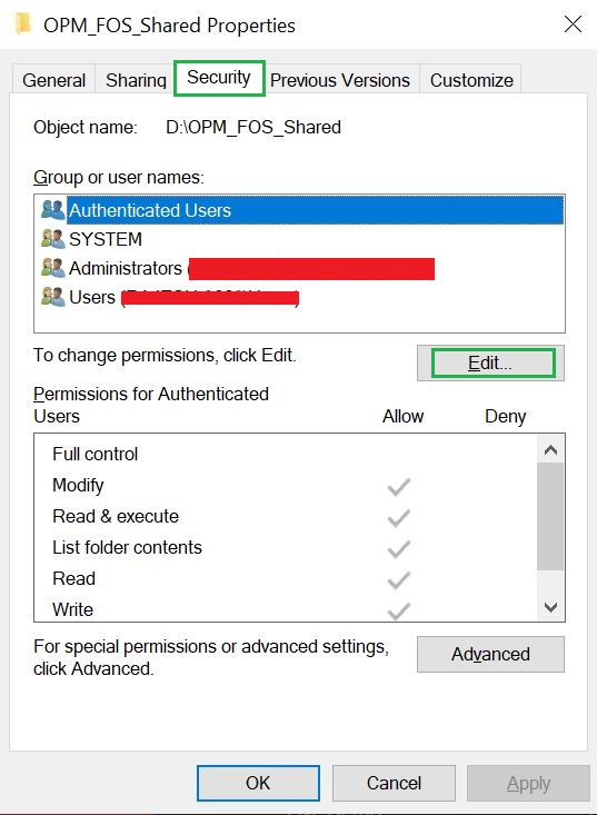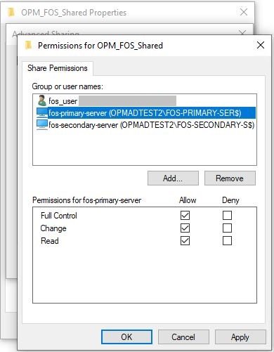 To share common folder with primary and secondary servers in OpManager: Permissions