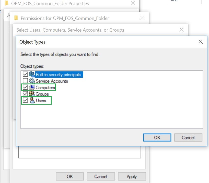 • Click on Object Types and make sure that both 'Computers' and 'Users' options are selected. This will allow you to share the file with a particular device in the network.