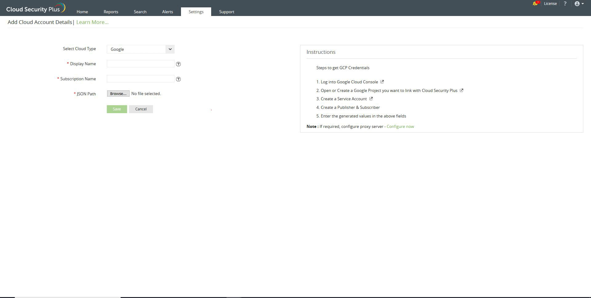 To configure Cloud Security Plus, please follow the steps below.