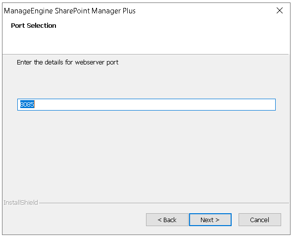 Before starting SharePoint Manager Plus in your environment, you need to ensure that the port required by the web client to connect to the server is available. By default, the solution uses port number: 8085.