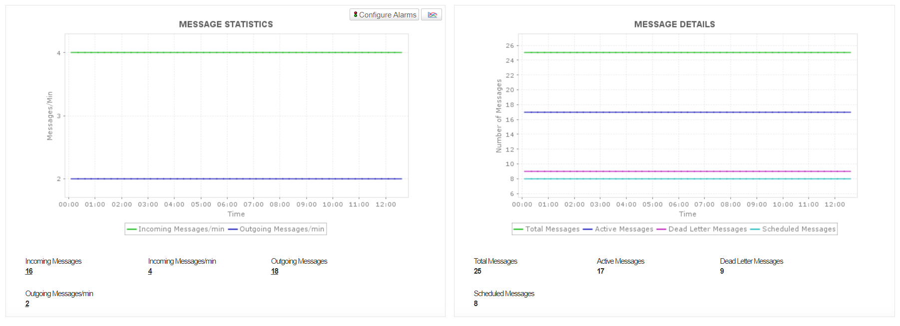 Si votre application métier implique la gestion des messages des clients et leur service, la surveillance des messages devient impérative. Avec le moniteur Microsoft Azure Service Bus d'Applications Manager, suivez les messages entrants et sortants ainsi que les taux de messages entrants et sortants. Assurez-vous que les débits des messages entrants et sortants sont presque synchronisés. Sinon, cela peut signifier que les demandes sont limitées.