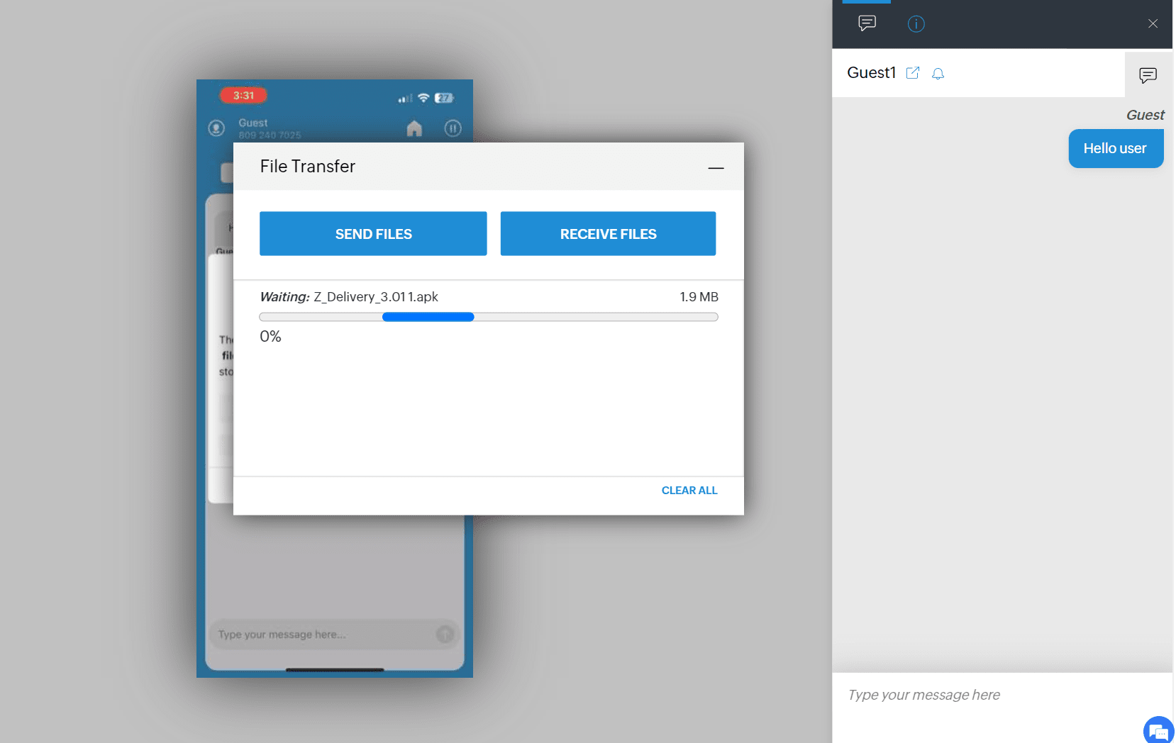During a remote session, admins can also send files to the device. The files received during the session are stored in File Transfer tab in MEMDM app. Admins can transfer files of all formats.