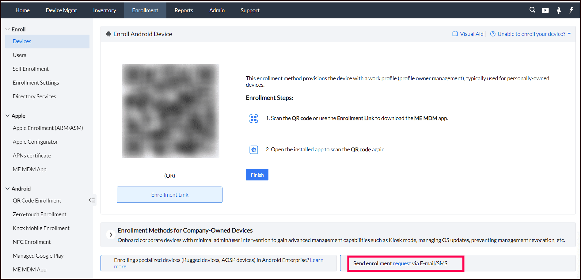 For step-by-step instructions on enrolling your device using the email or SMS invite, check out our Invite Enrollment Process guide.