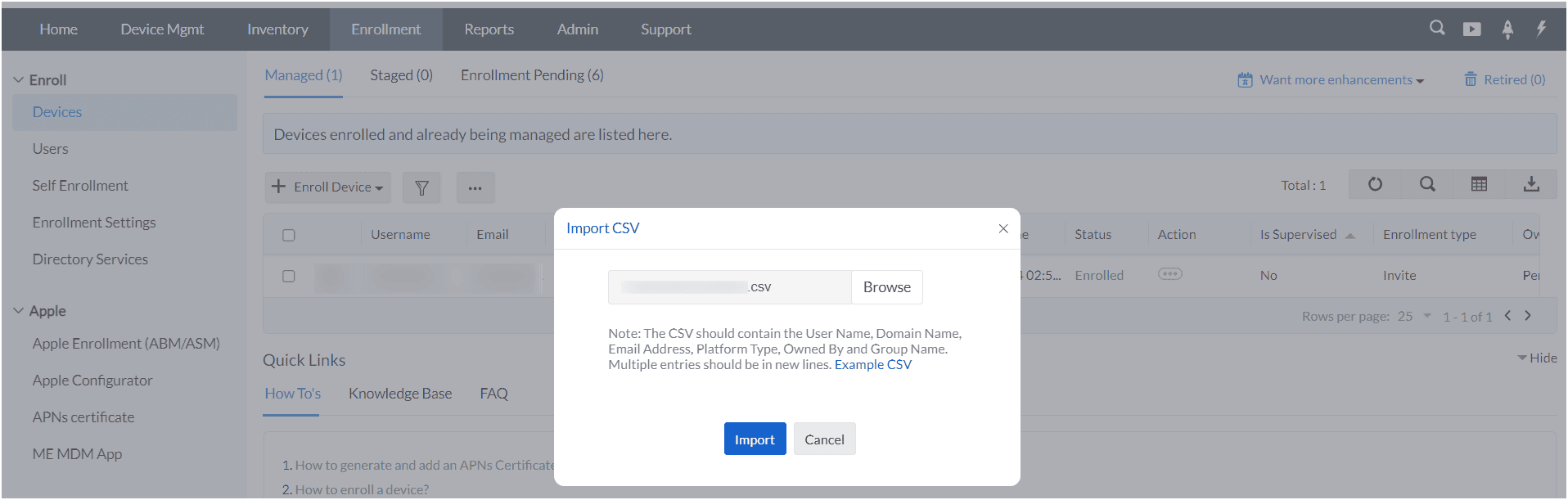 - The Bulk Invite enrollment method using a CSV file allows the enrollment of multiple devices for multiple users simultaneously.