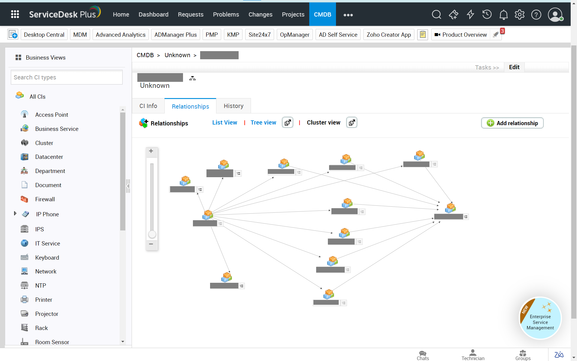 The devices and relationships are now successfully synced from OpManager to ServiceDesk Plus. You can now view the devices and their corresponding relationships from ServiceDesk Plus console.