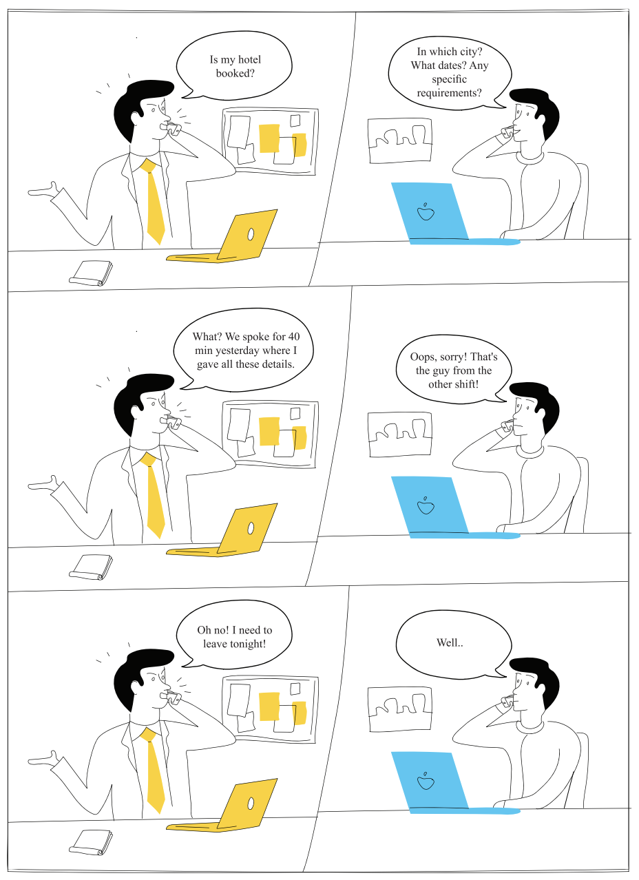 The Travel Desk, with multiple technicians working multiple shifts, is a machine in itself. But we realized that should no way hinder the experience of a traveler. To them, it should just be one system—the Travel Desk and nothing more. To facilitate this, we needed to establish consistency in communication. Once a conversation happens between the traveler and the Travel Desk, subsequent communication must take off from exactly where and how it ended before.