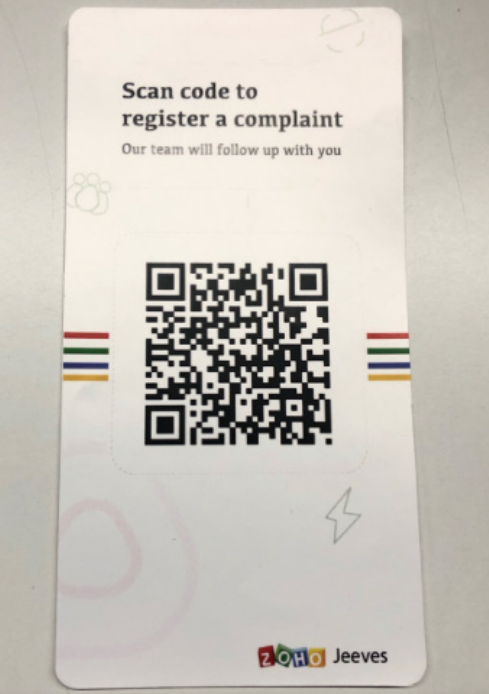 Using Jeeves, an employee can simply scan this QR code to send their complaint to the right person. Furthermore, once the complaint is resolved, the employee receives a notification. This has helped Zoho avoid thousands of redundant and irrelevant complaints.