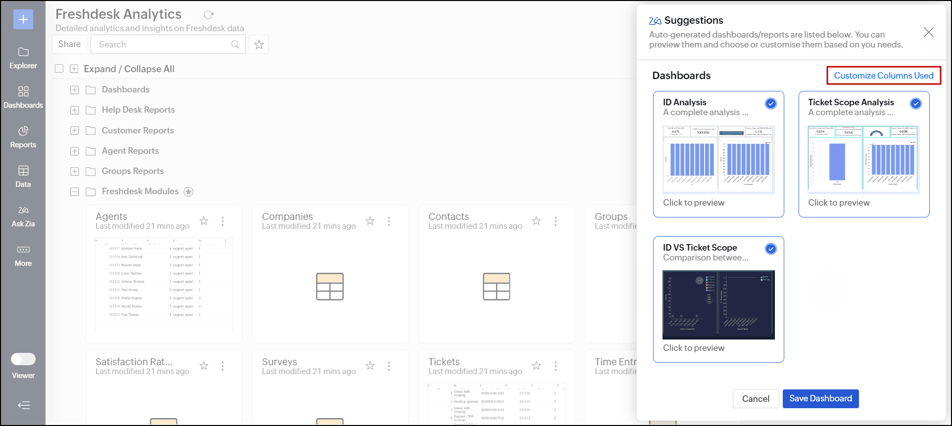 Analytics Plus empowers you to customize the columns used for analysis through the Customize Columns Used option.