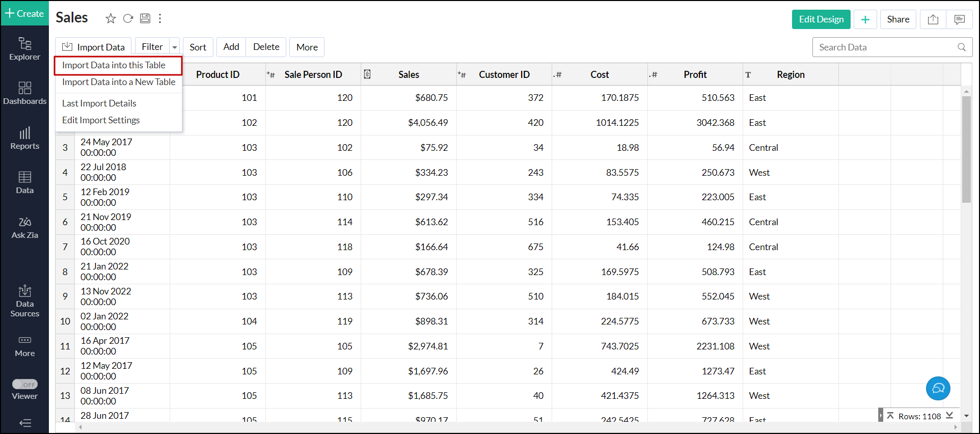 - Open the corresponding table, and click Import Data > Import Data into this Table.