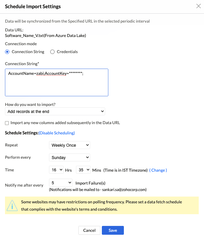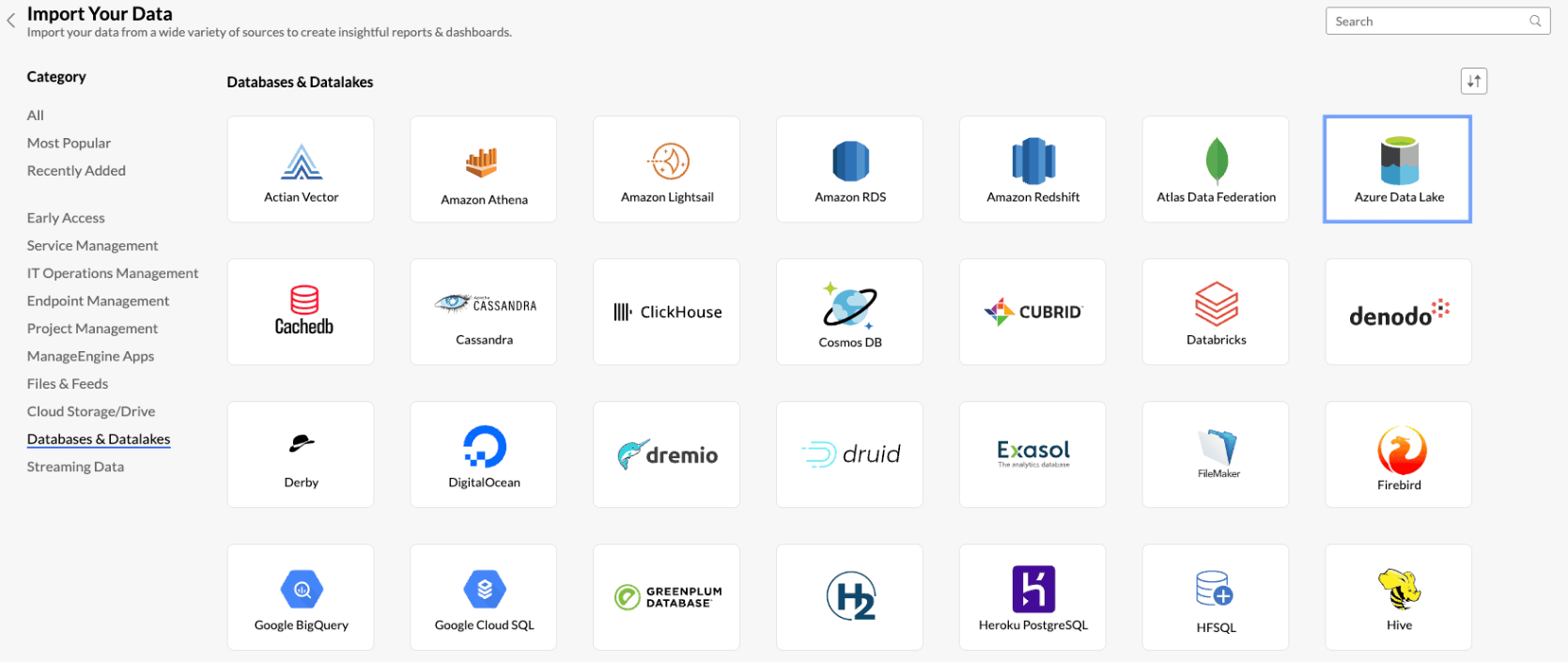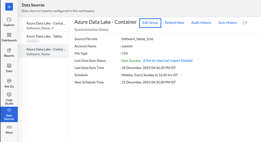 Analytics Plus allows you to connect to the data stored in the Azure Data Lake and create data visualisations that help in identifying the underlying trends and optimize operational efficiency. You can also schedule imports for periodic synchronization.
