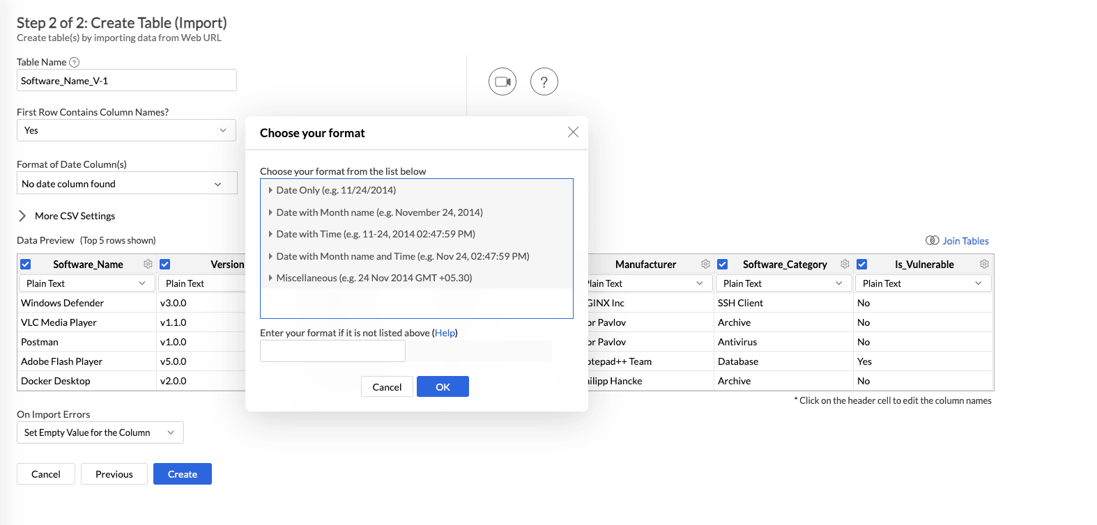 Analytics Plus intelligently identifies the format of the date column while importing but if there's any difference in the identified format you can change it using the Format Date option while importing.