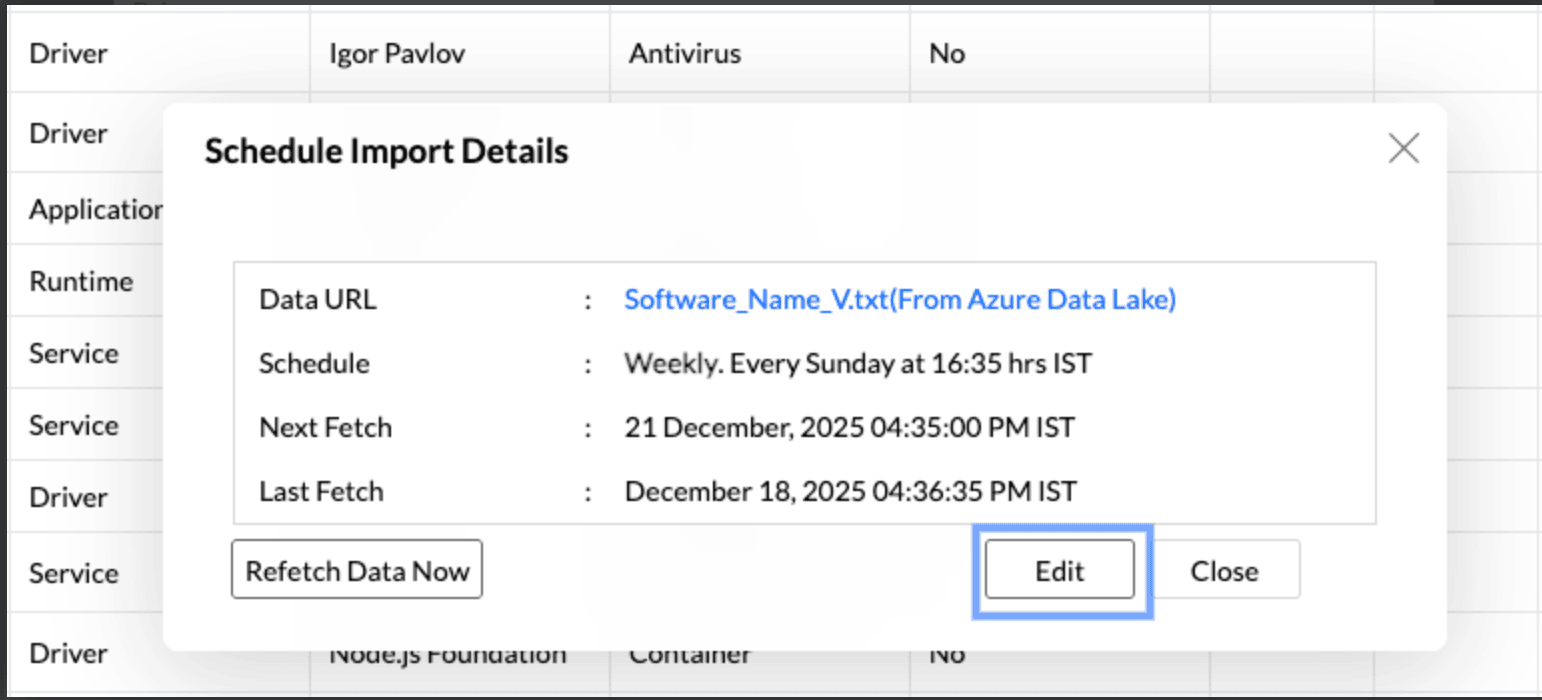The Schedule Import Details dialog will open. You can view the following details: