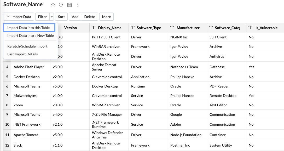 From the required table, click Import Data > Import Data into this Table.