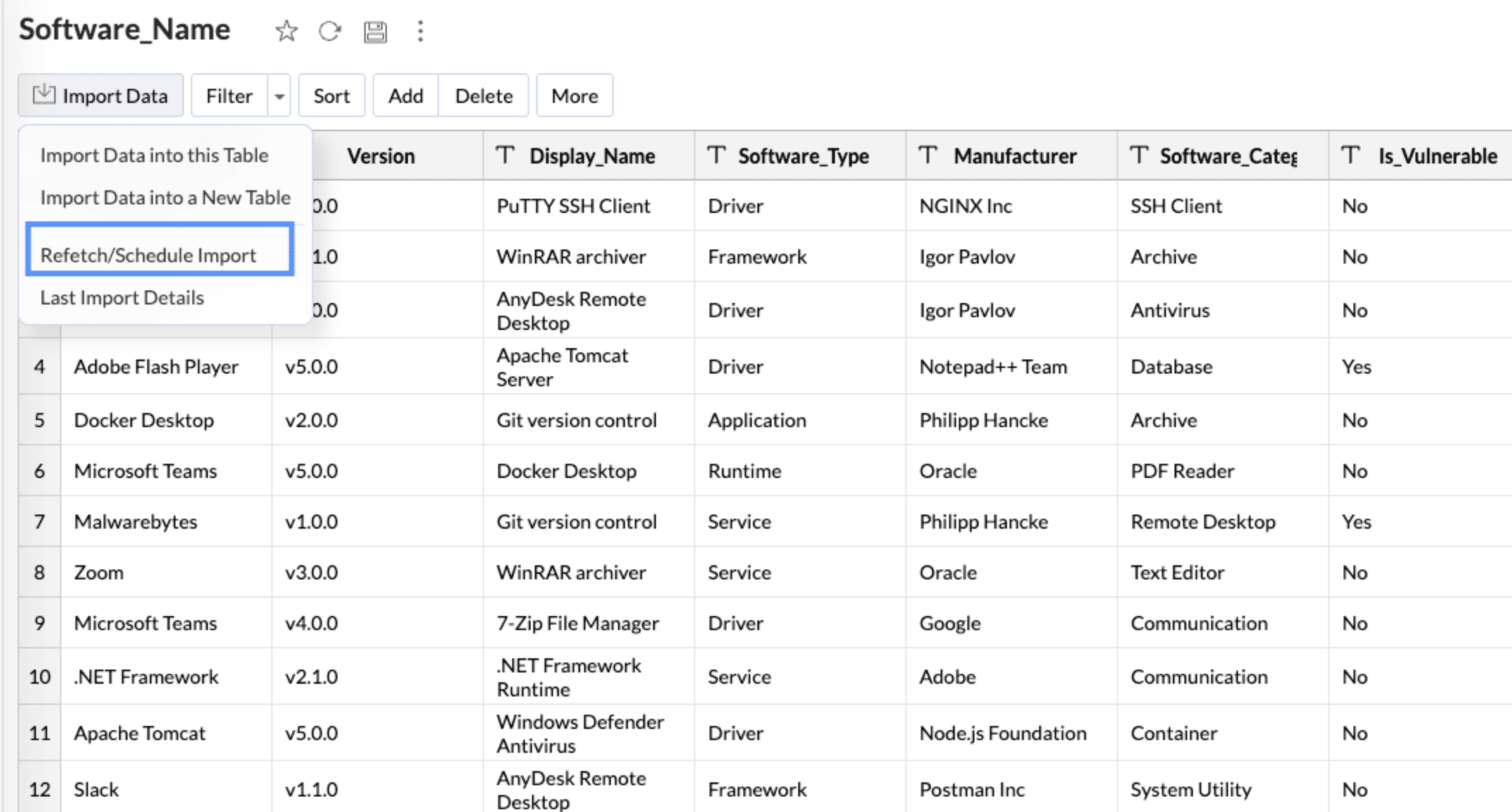Select Refetch/Schedule Import from the drop-down.