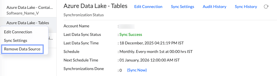 Select Remove Data Source option from the drop-down menu.