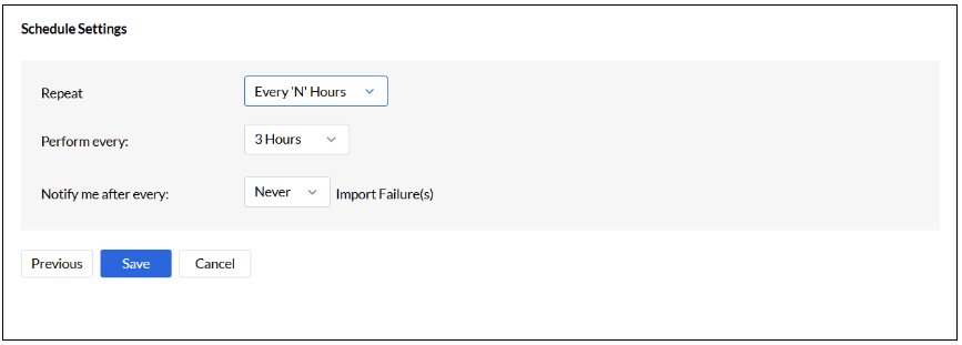 2. Selecting Not Scheduled will import the data only once, i.e., at the time of import.