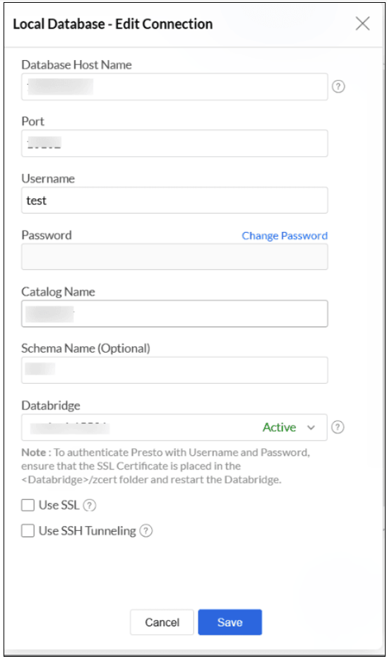 2. Select the checkbox 'Use SSL' to secure data transmission between Presto and Analytics Plus.