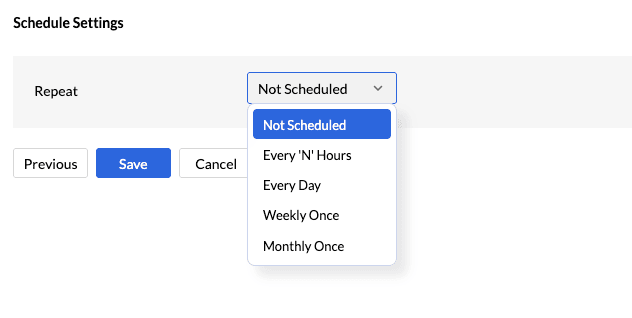 In the Schedule Setting pane, choose the interval in which you would like to synchronize the data. You can choose to synchronize your data at one of the intervals mentioned below.