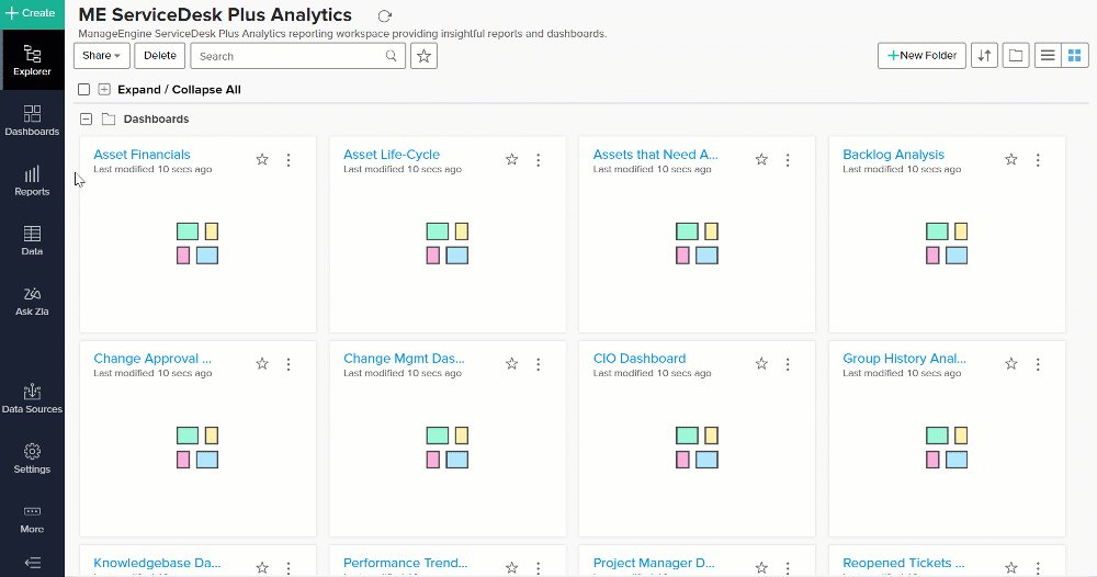 Analytics Plus is a self-service business intelligent and analytics software that empowers you to transform complex IT data into actionable insights without the data scientists. It allows you to create intuitive reports and dashboards and collaborate with the team for informed decision-making.