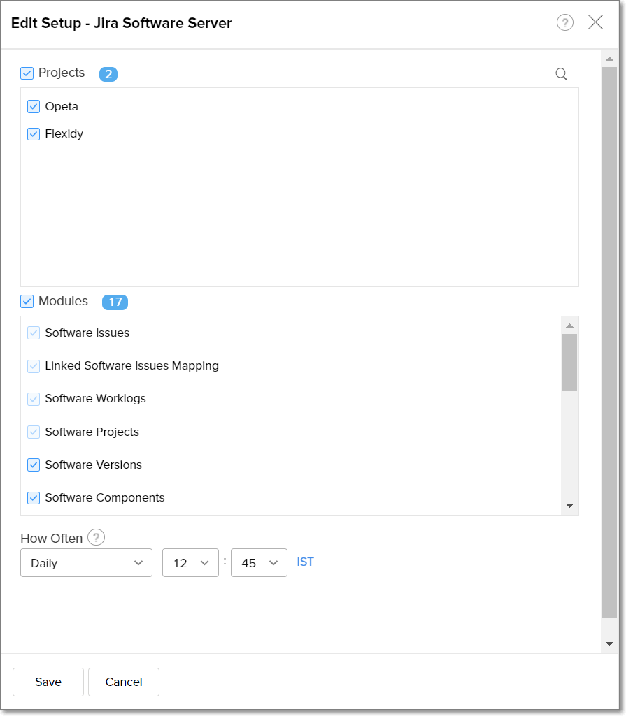 Schedule: The frequency of data synchronization between Analytics Plus and Jira Software.