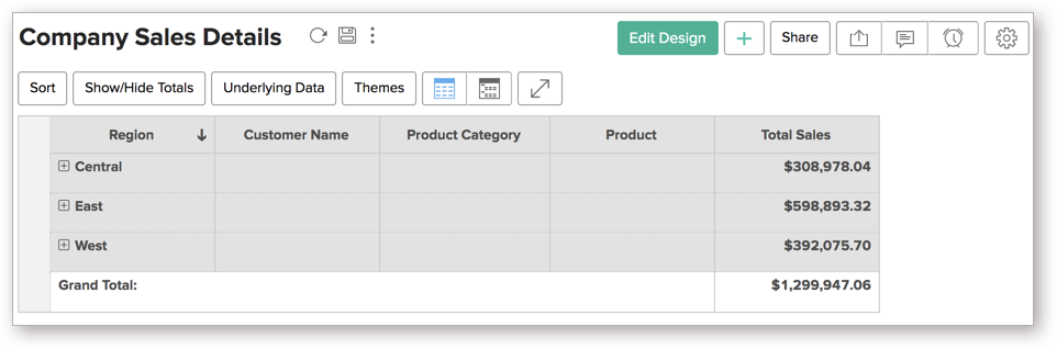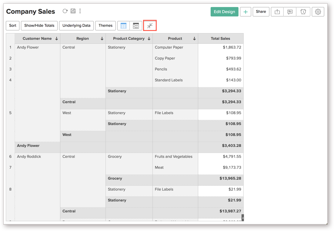 Analytics Plus allows you to expand and collapse the rows, columns and cells in your pivot views. When you create a pivot table, every row, column, and cell will be displayed automatically. However, you can choose to collapse this detailed view. Follow the steps below to do this: