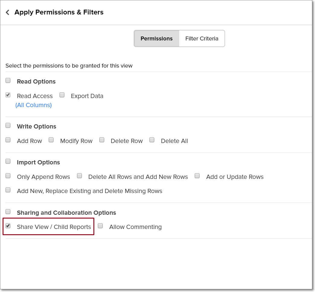 Shared users can further share the views, if the Share View/Child Report permission is enabled while the view was shared to them.