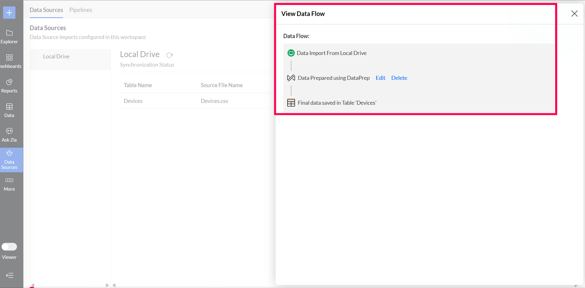 Data flow helps you to know at which stage the data has been cleansed and prepared for analytics. You can also Edit or Delete the transformations if necessary.