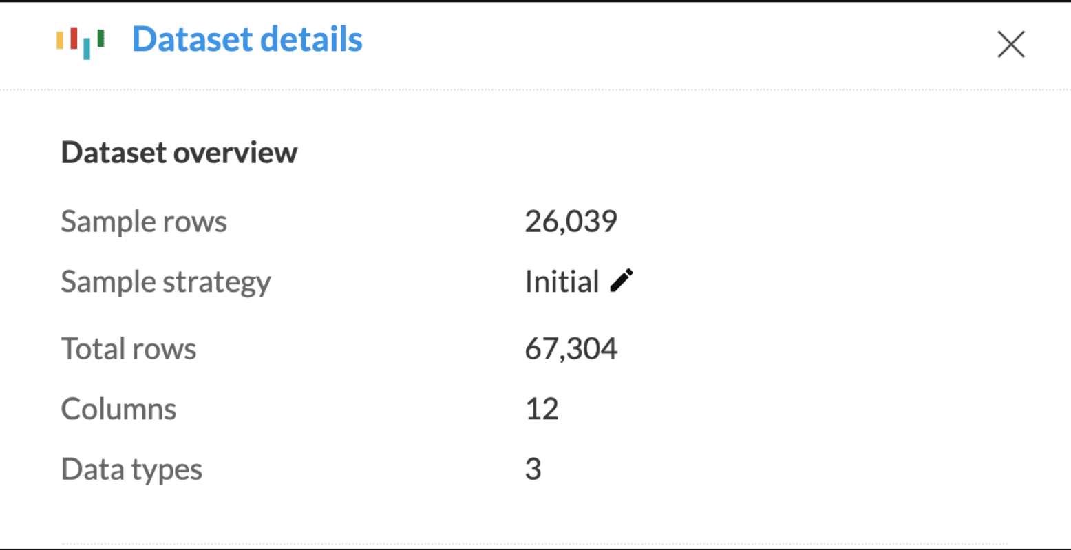 If the imported data is small enough, the entire dataset will be imported for data preparation and the sample details will not be shown in the dataset details section.