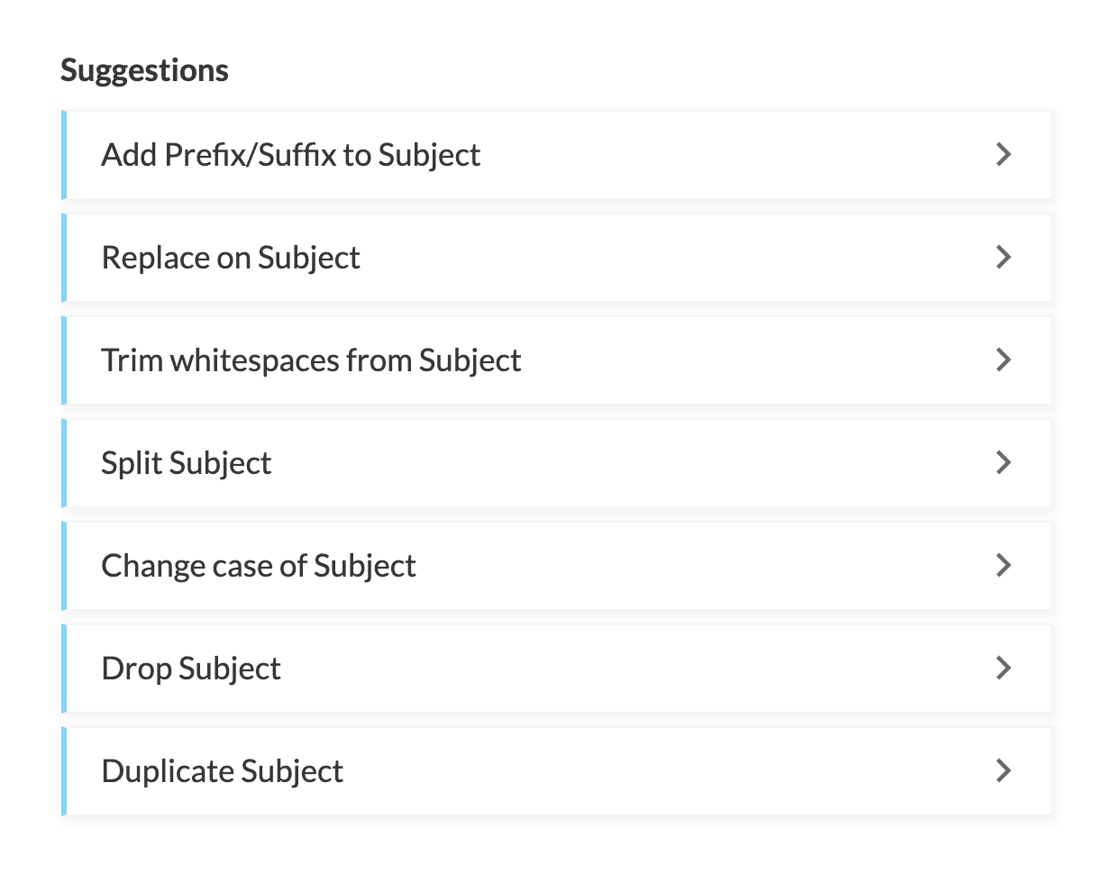 Suggestions - consists of intelligent suggestions to increase the data quality of the column selected.