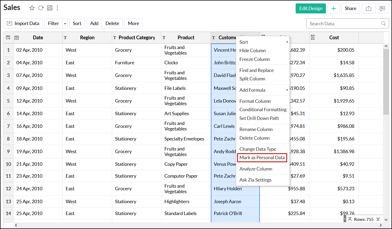 Analytics Plus allows you to securely handle the personal information in the table by marking them as Personally Identifiable Information (PII). It could be any information that potentially identifies an individual.