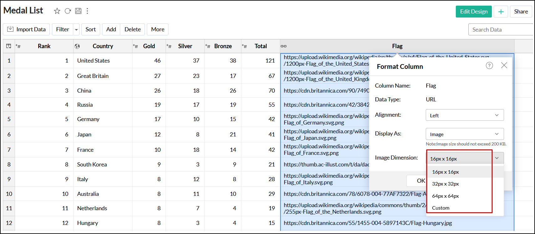 • Open the required table, right-click the required image URL column, and select the Format Column option.