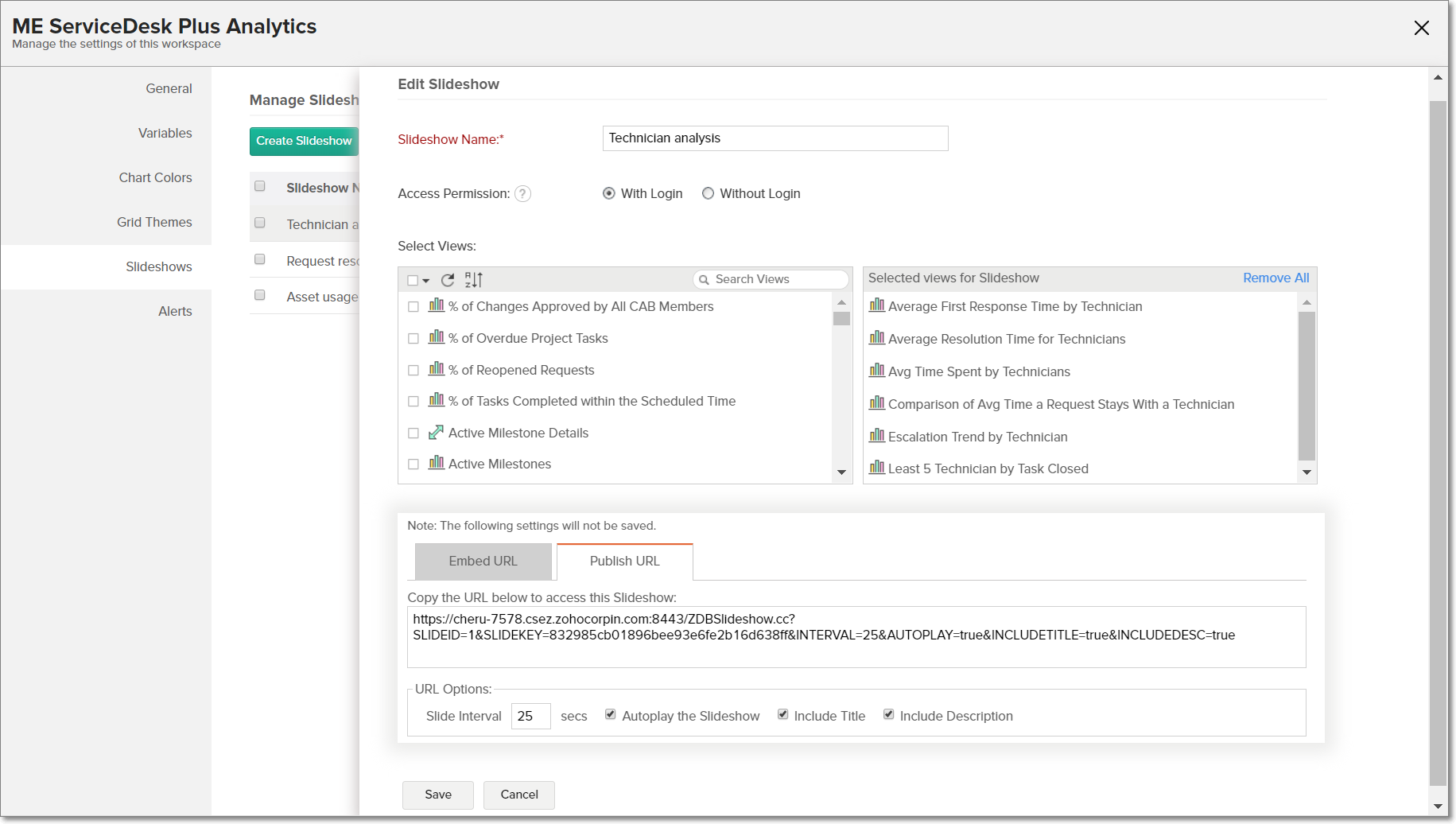 • Get Publish/Embed URL: This option allows you to copy the slideshow's embed URL.