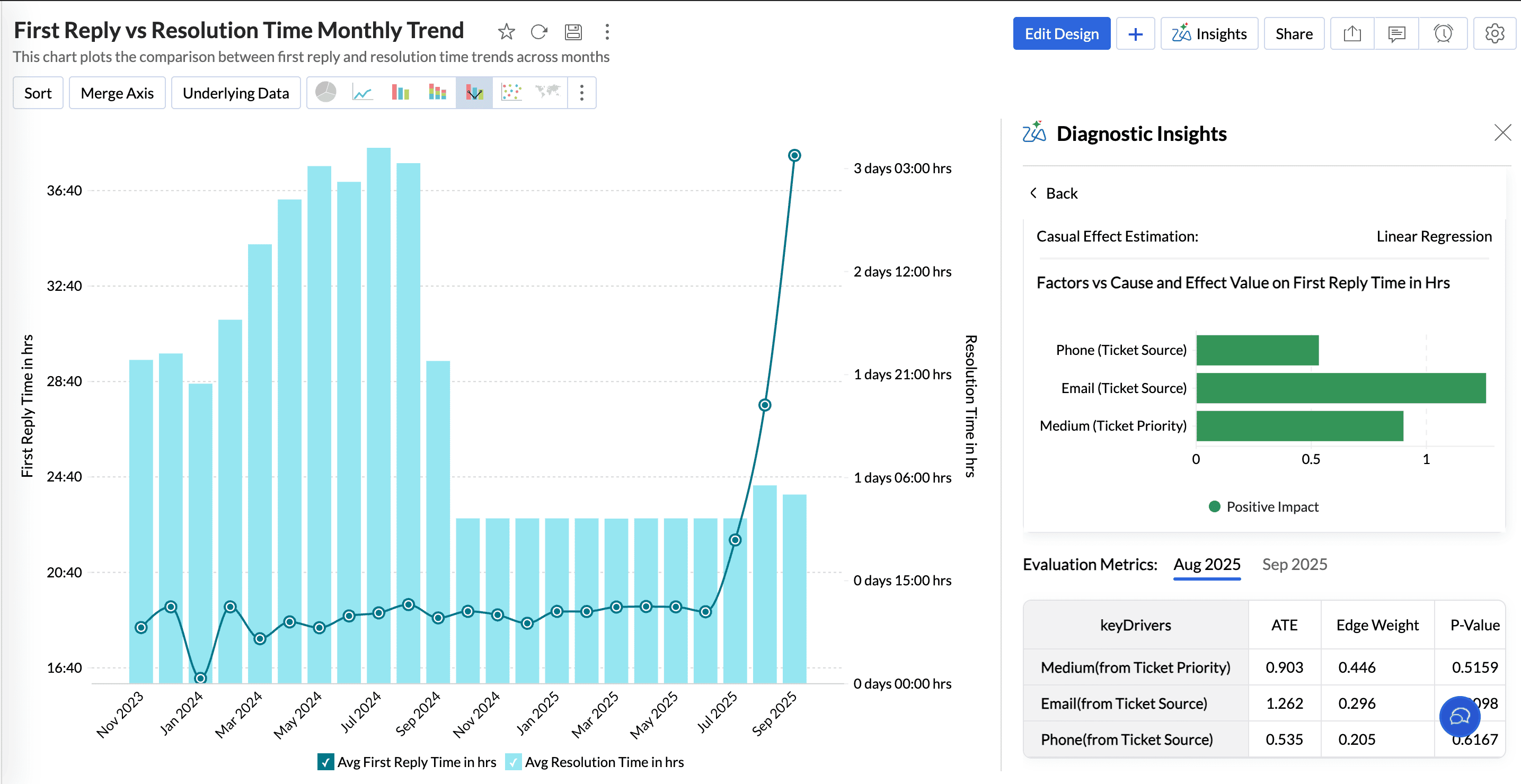 - Trends and Relationships analysis between the target measure and influencing measures reveals whether there is an increasing or decreasing trend. It also determines the type of correlation, whether direct or indirect, and offers prescriptive recommendations to sustain or enhance the observed trend.