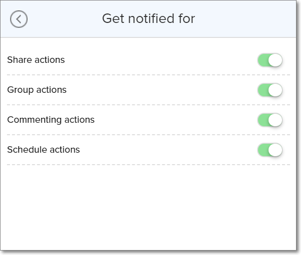 Use the toggle buttons against each option to enable or disable the corresponding notification.