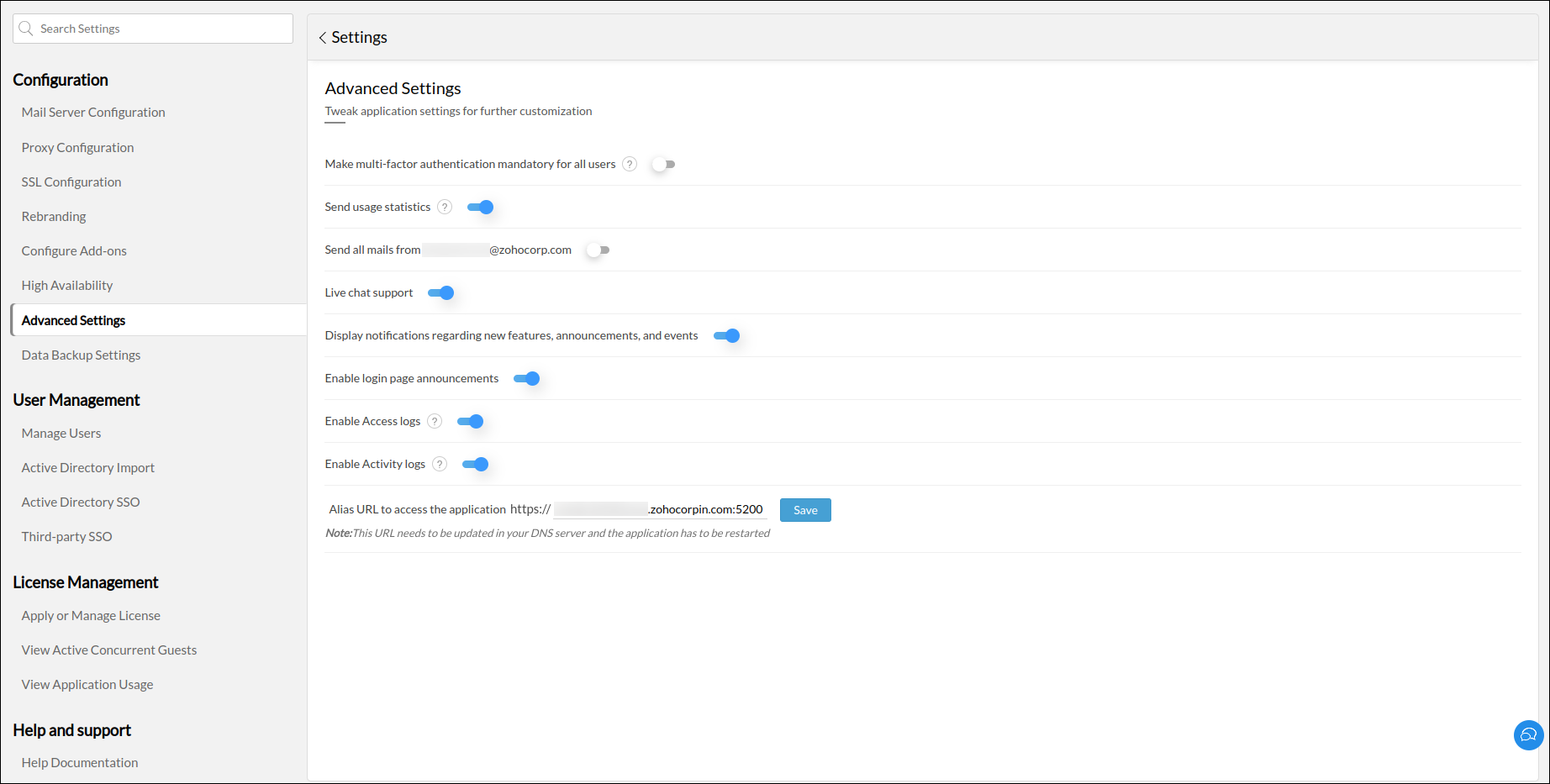 - Access logs: This option enables the administrators to monitor the application access information.