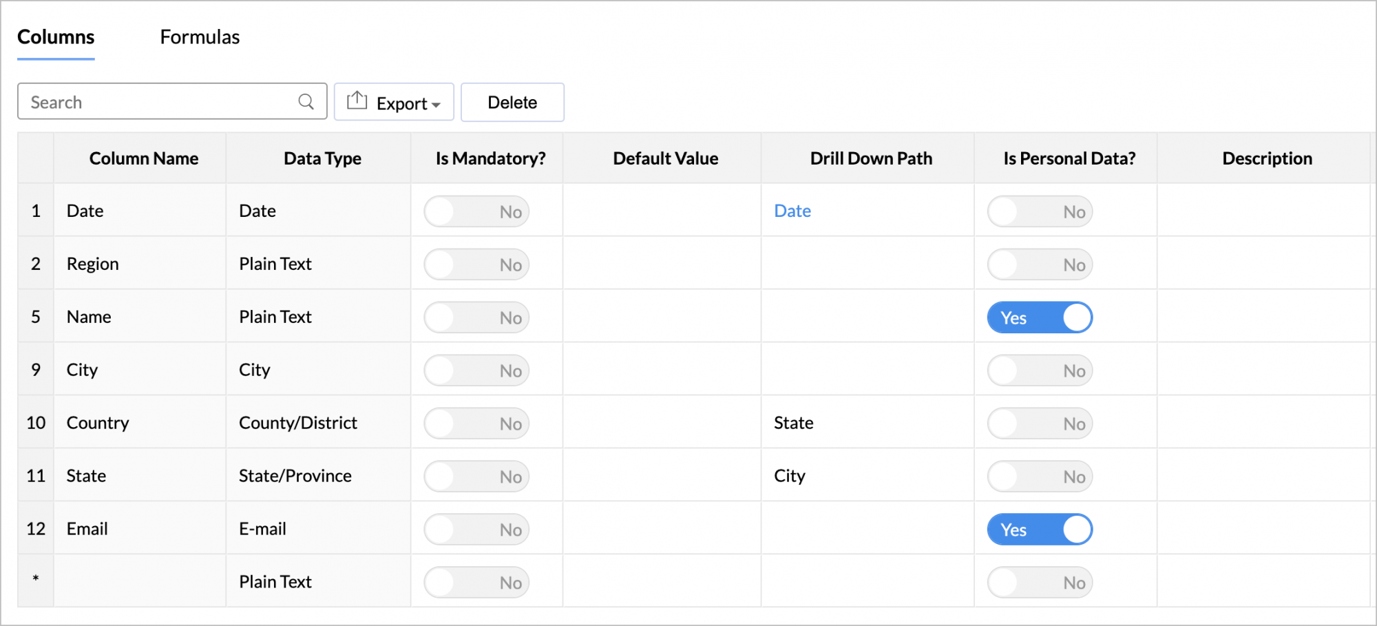 Alternatively, you can also click the Edit Design button in the toolbar and change the value of Is Personal Data? to 'Yes' for the ePHI column.