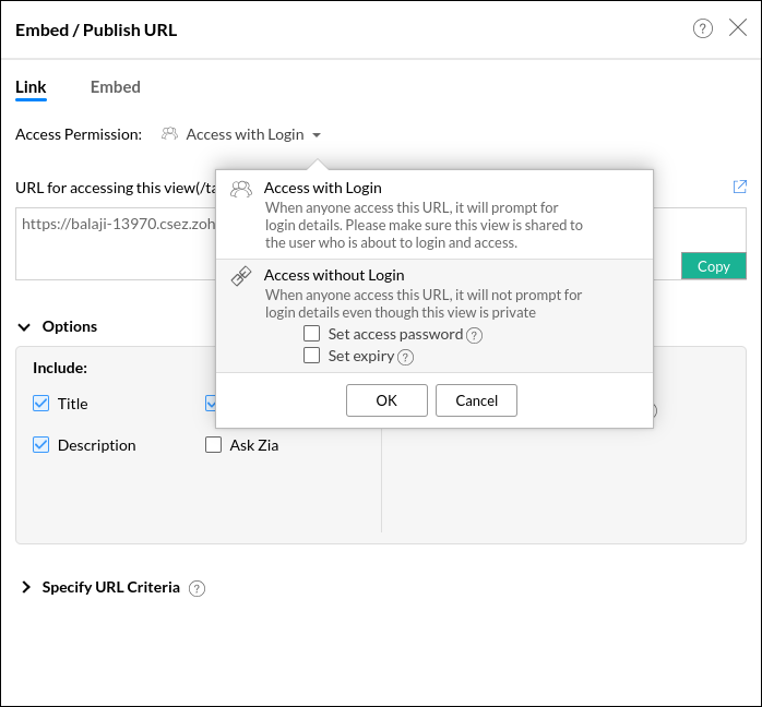 - Expiry Date for Embed and Permalink: You can also set an expiry date for published views with Access without Login permission. So that the published view will not be accessible after a specific period of time.