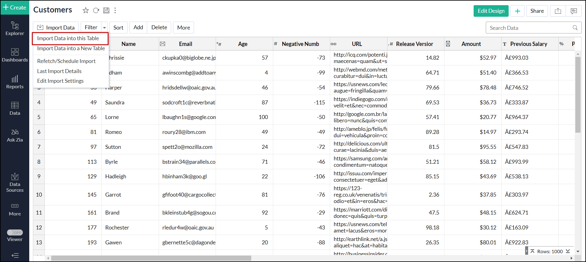 Note: To import data into an existing table, at least one column header should match the data that is set to import.