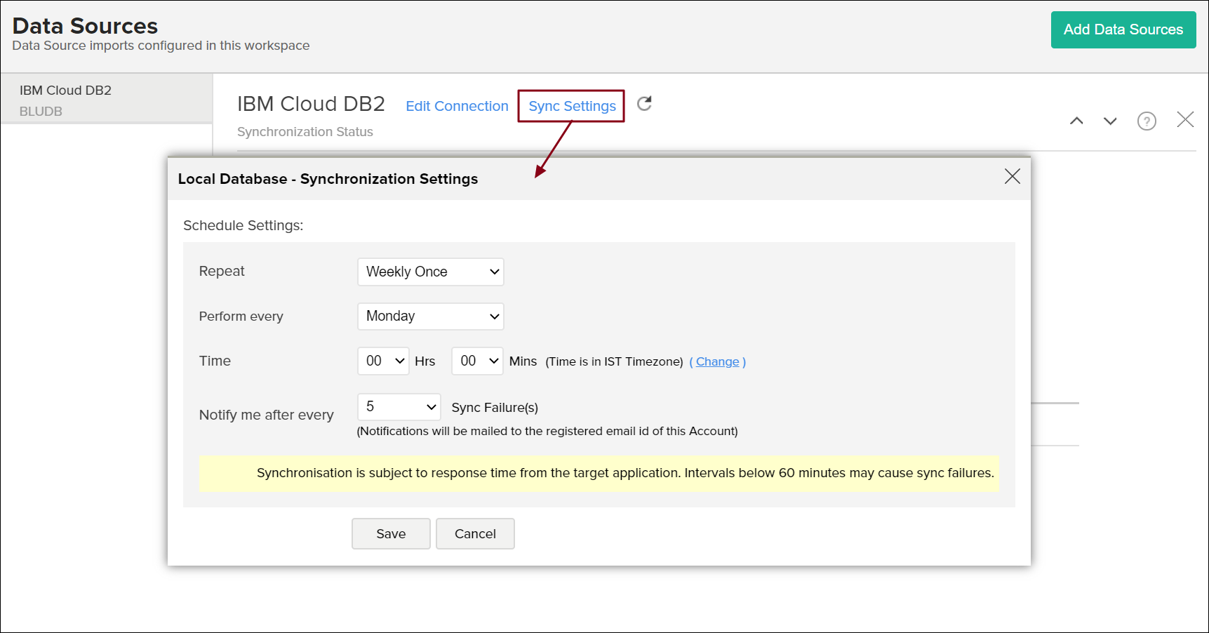 Specify the number of consecutive import failure after which you are to be notified using the Notify me after every 'N' Sync Failure (s) section.