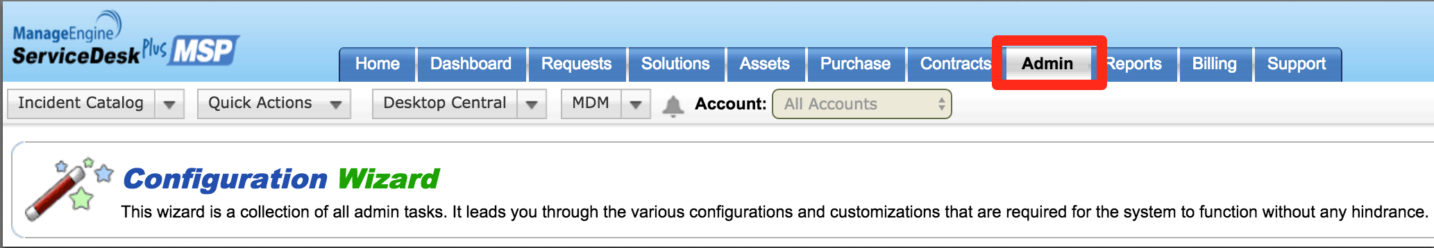 - Login to your ServiceDesk Plus MSP account as 'Administrator'
