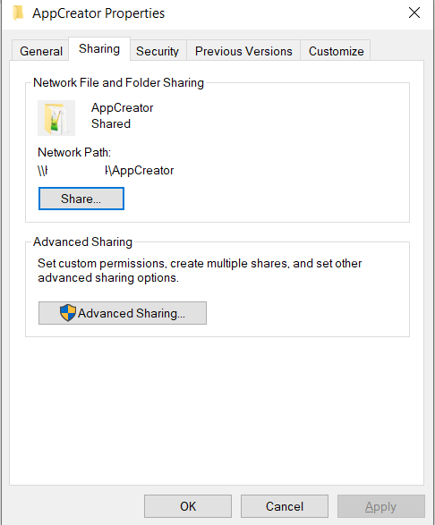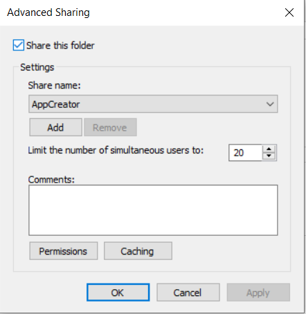 \AppCreator from another server. You will be able to access the AppCreator folder once you provide the credentials. - Restart the primary server after configuring file sharing, then start the secondary server.