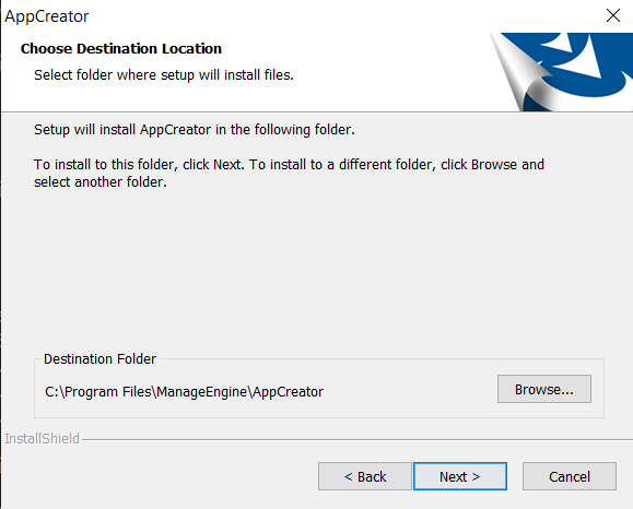 - Choose the destination folder location where your installated files will be added. Click Next to continue.