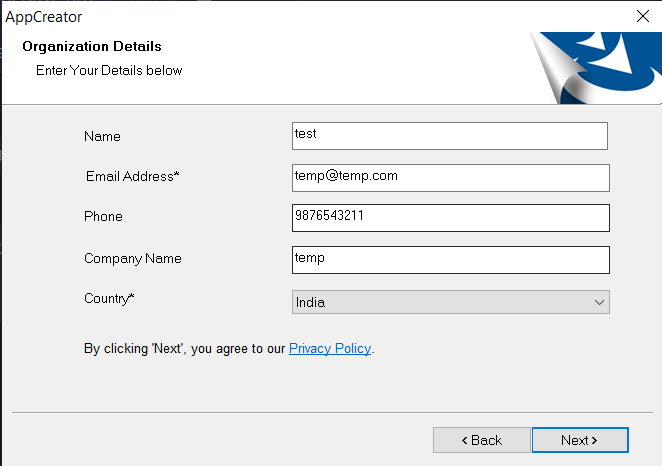 - Enter you organization's details in the next screen. Click Next to finish setting up High Availability for your application.